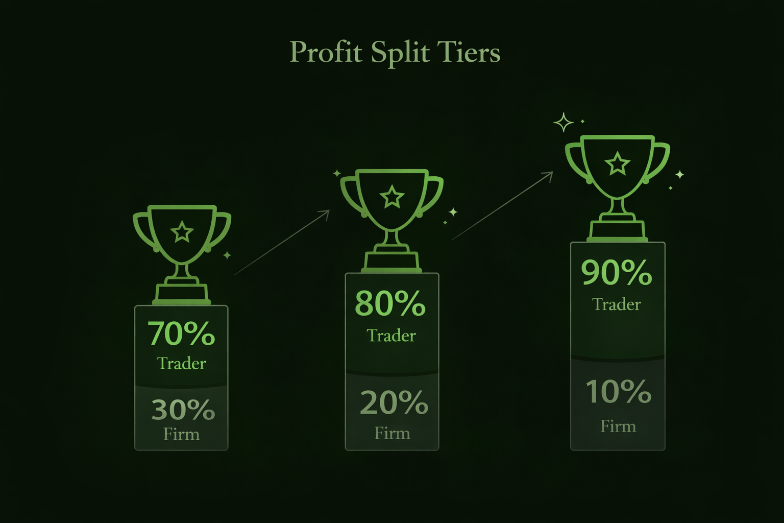 Understand prop firm profit splits, how 70/30, 80/20, and 90/10 payouts work, what affects percentages, and how rules, scaling, and fees impact what traders keep.